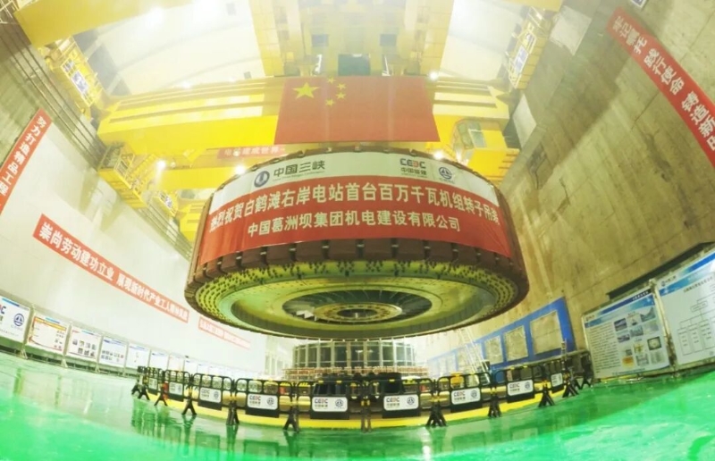 白鹤滩右岸电站首台百万千瓦机组转子成功吊装